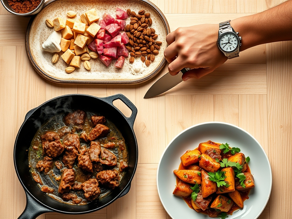 Before we ignite the flame, we must respect the mise-en-place. For the protein, look for chuck roast or brisket. These cuts are high in collagen, which is essential for that luxurious mouthfeel. You will need a digital scale to measure exactly 800 grams of beef, cubed into uniform 1.5-inch pieces to ensure even thermal distribution.