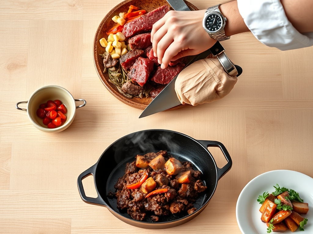The flow begins with the "Hard Sear." Never crowd the pan; doing so drops the temperature and causes the meat to steam in its own juices rather than brown. Work in batches if necessary. While the first batch renders, use that time to prep your garnishes. This overlapping method ensures that by the time the last bit of beef is finished, your table is already set. Total time from fridge to fork is roughly 45 minutes.