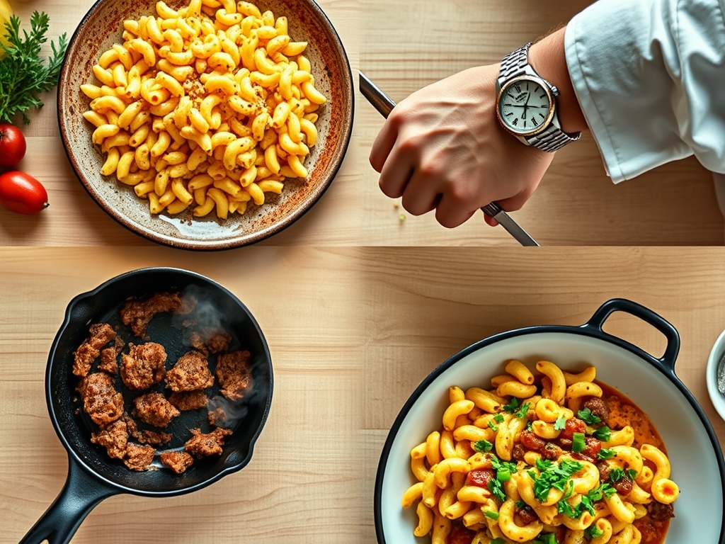 The secret to the flow is starting your water first. While the high heat works on the H2O, you tackle the protein. By the time the macaroni is ready to drain, your beef should be perfectly browned and seasoned. This overlap ensures that no component sits long enough to lose its structural integrity or heat.